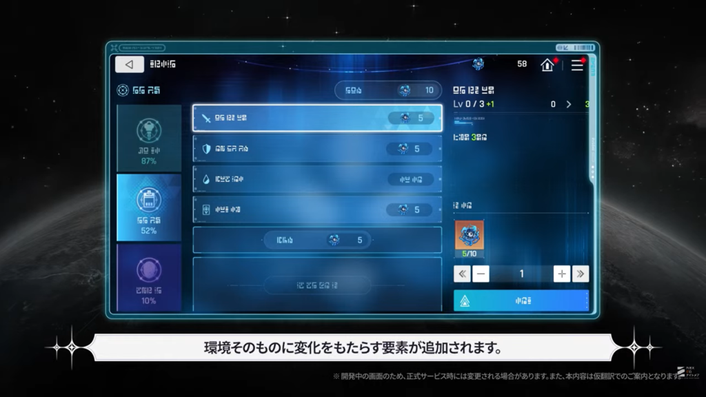 育成素材を消費せずにキャラを育成できる機能