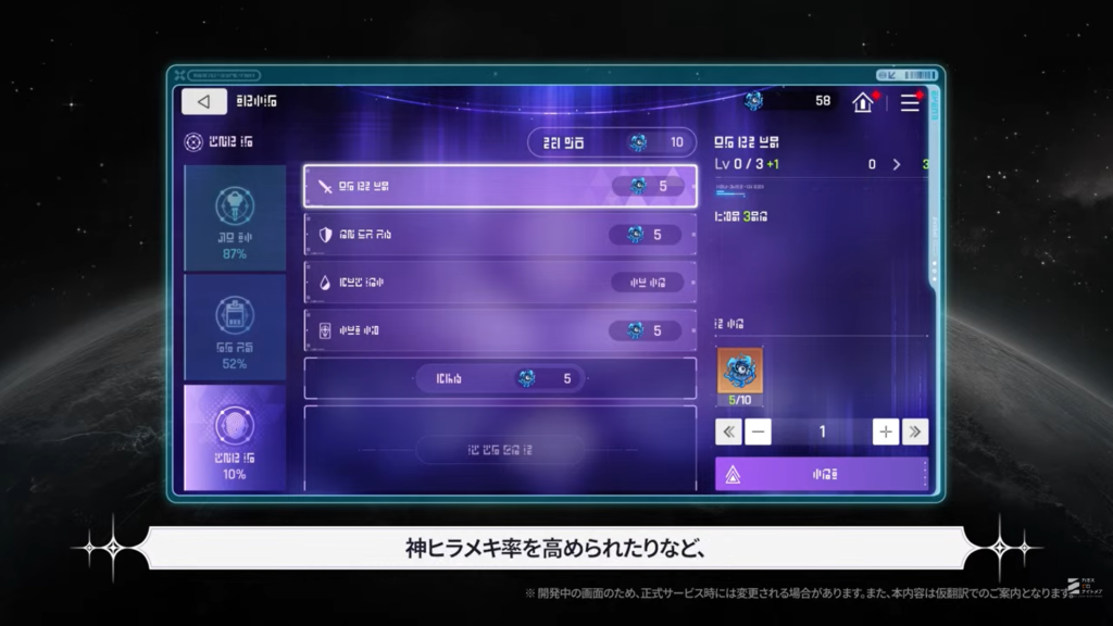 ヒラメキのリロール機能、神ヒラメキ率を高める機能、選択カードのコピー機能など